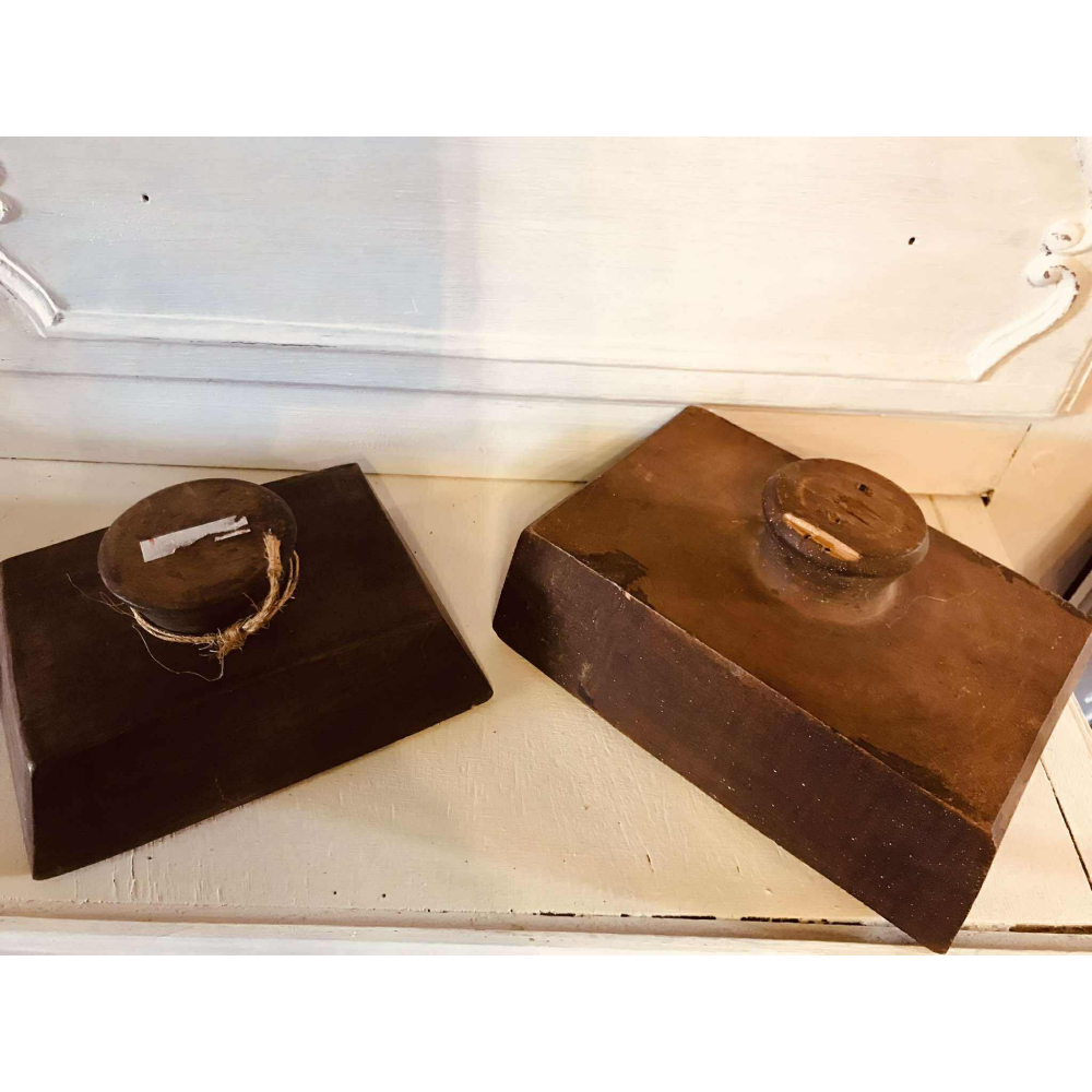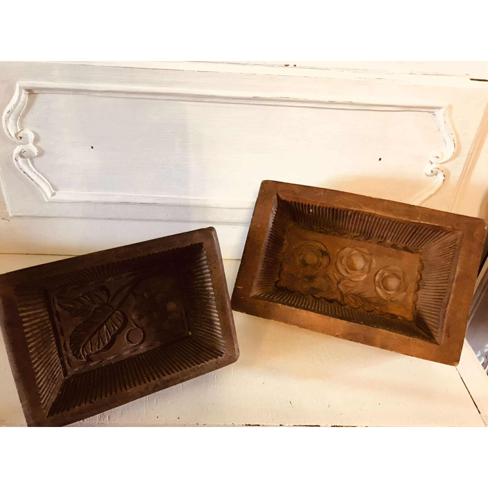 Breng een vleugje nostalgie en landelijke charme in huis met deze schitterende, authentieke botervormen! Deze twee antieke houten mallen zijn met de hand gesneden en hebben elk een uniek motief in reliëf: