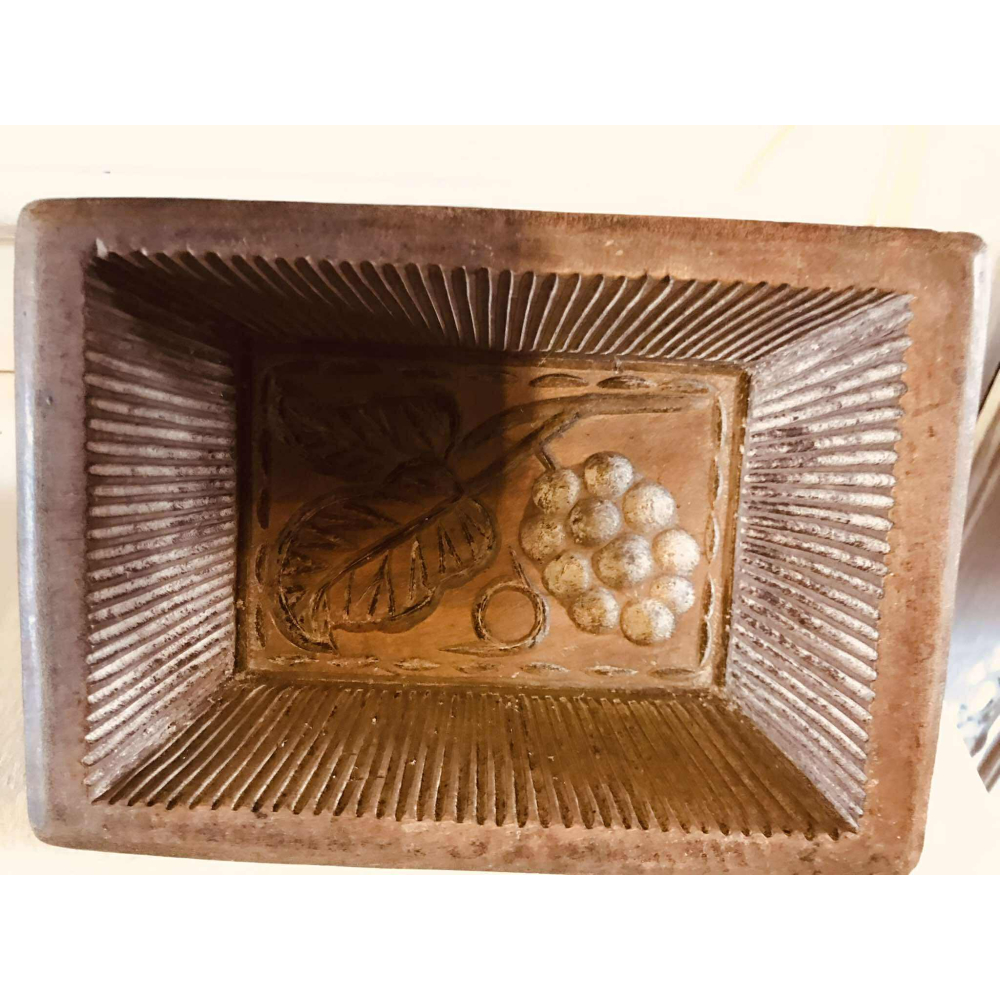Eén met druiven en bladeren Ze werden vroeger gebruikt om boter in sierlijke vormen te presenteren op de boerderijtafel of tijdens feestelijke gelegenheden. Tegenwoordig zijn ze geliefd als decoratie, voor landelijke interieurs of als verzamelaarsobject. Ze dateren van tussen 1850 en 1930