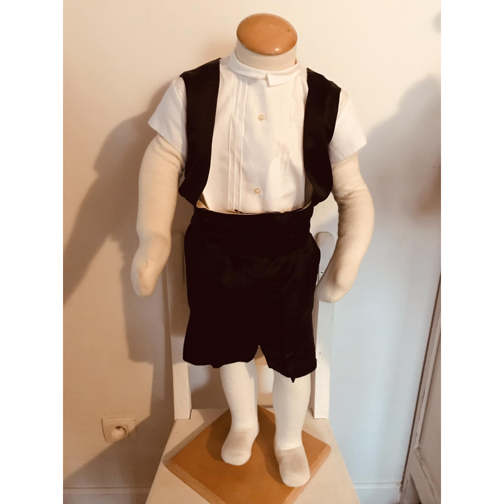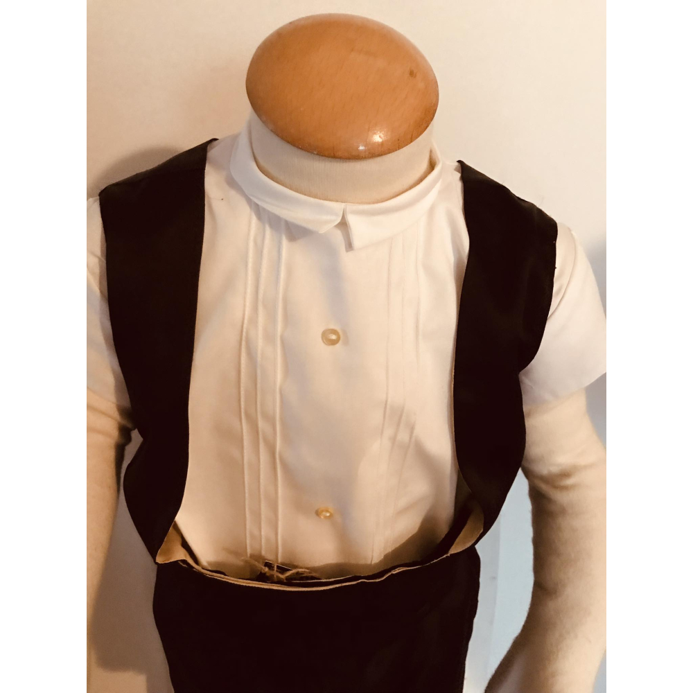 Antieke kindersmoking zoals ze het noemden. Broekje en gilletje zijn van rond 1930 en gemaakt in het mooie Parijs. Het hemdje eronder is vintage en van de jaren 1950. Het kan op zijn geheel worden gekocht met paspopje of enkel de kleertjes