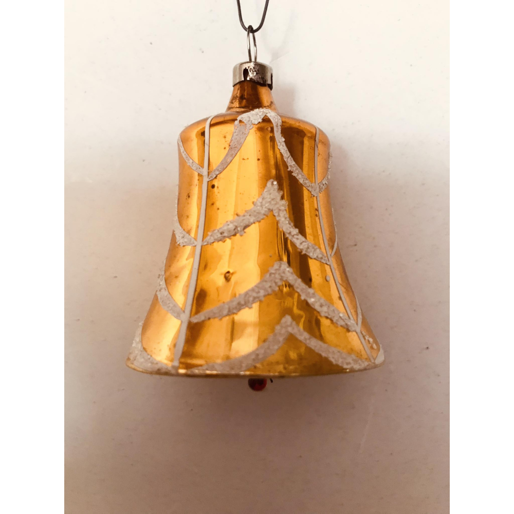 Antieke glazen kerstbal in de vorm van een klokje met een klepeltje