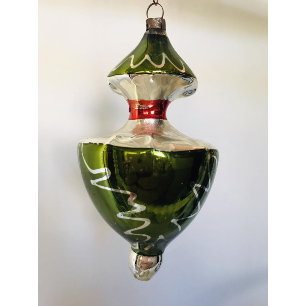 Antieke handgeschilderde kerstbal in de vorm van een tol