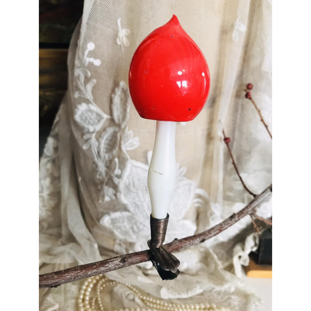 Oude paddenstoel op Clip. Heeft verfverlies op de stam en de stippen zijn vervaagd