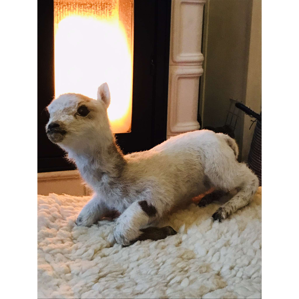 Nog een mooi wit lammetje met lichtbruine vlekjes Een kleiner, schattig exemplaar 46cm lang 27cm hoog