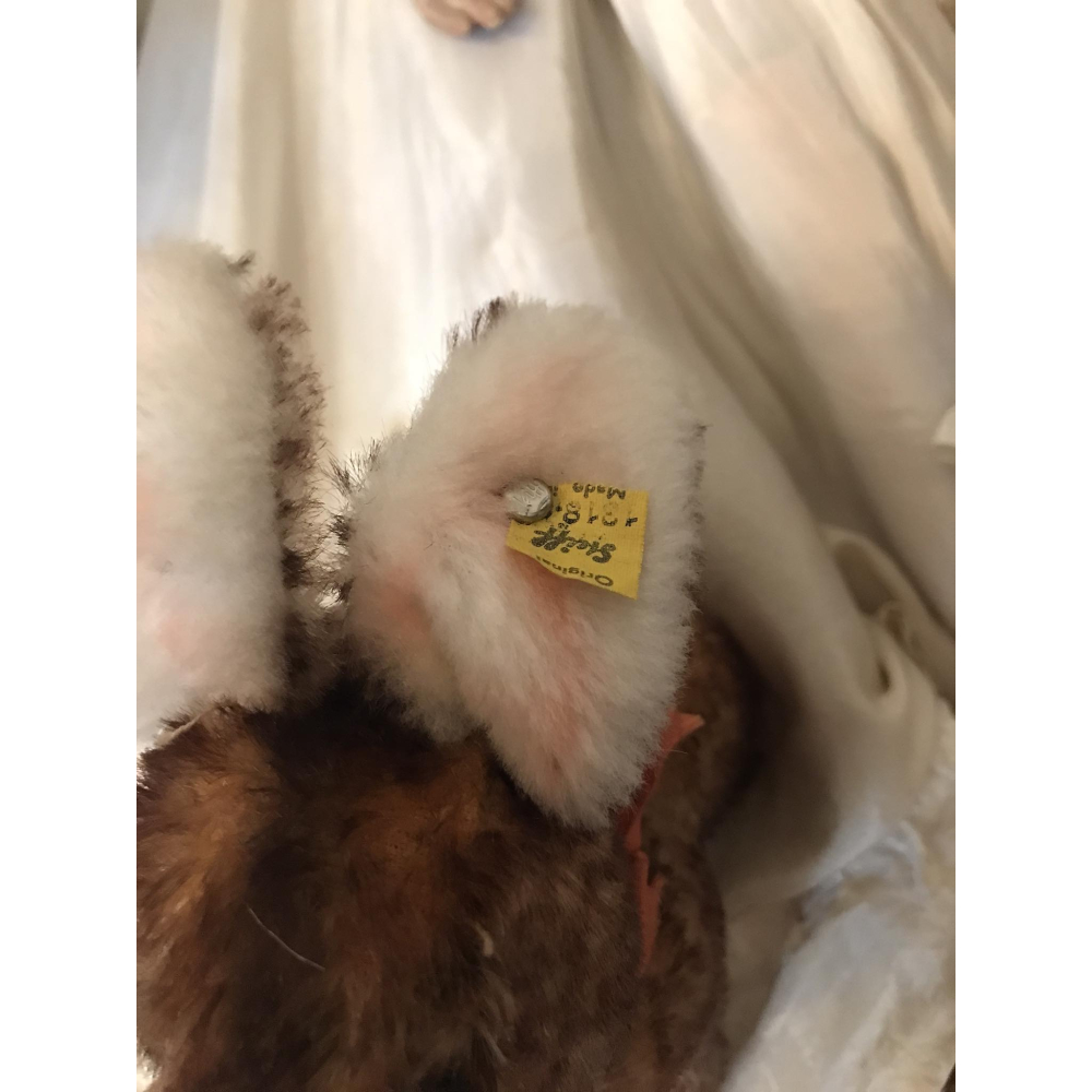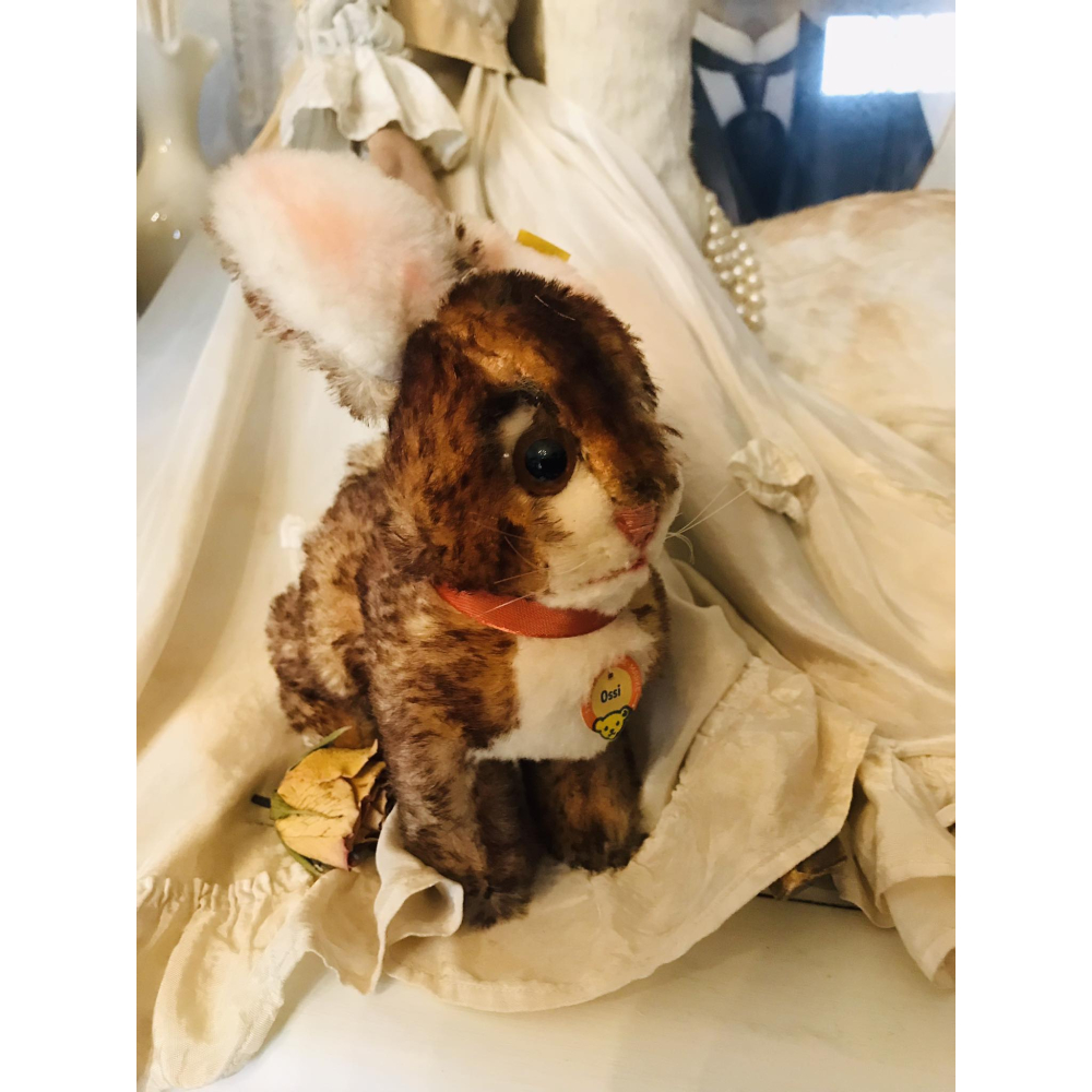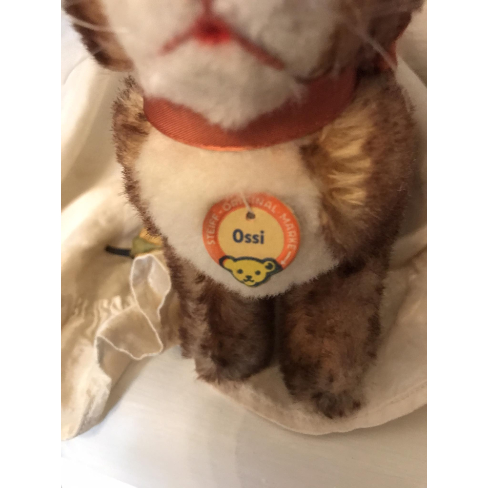 Het konijntje met label Ossi van het merk Steiff in prachtige staat Geen beschadigingen Zowel knop in oor, halsbandje als naamlabel is nog aanwezig. hoogte met oortjes 20cm
