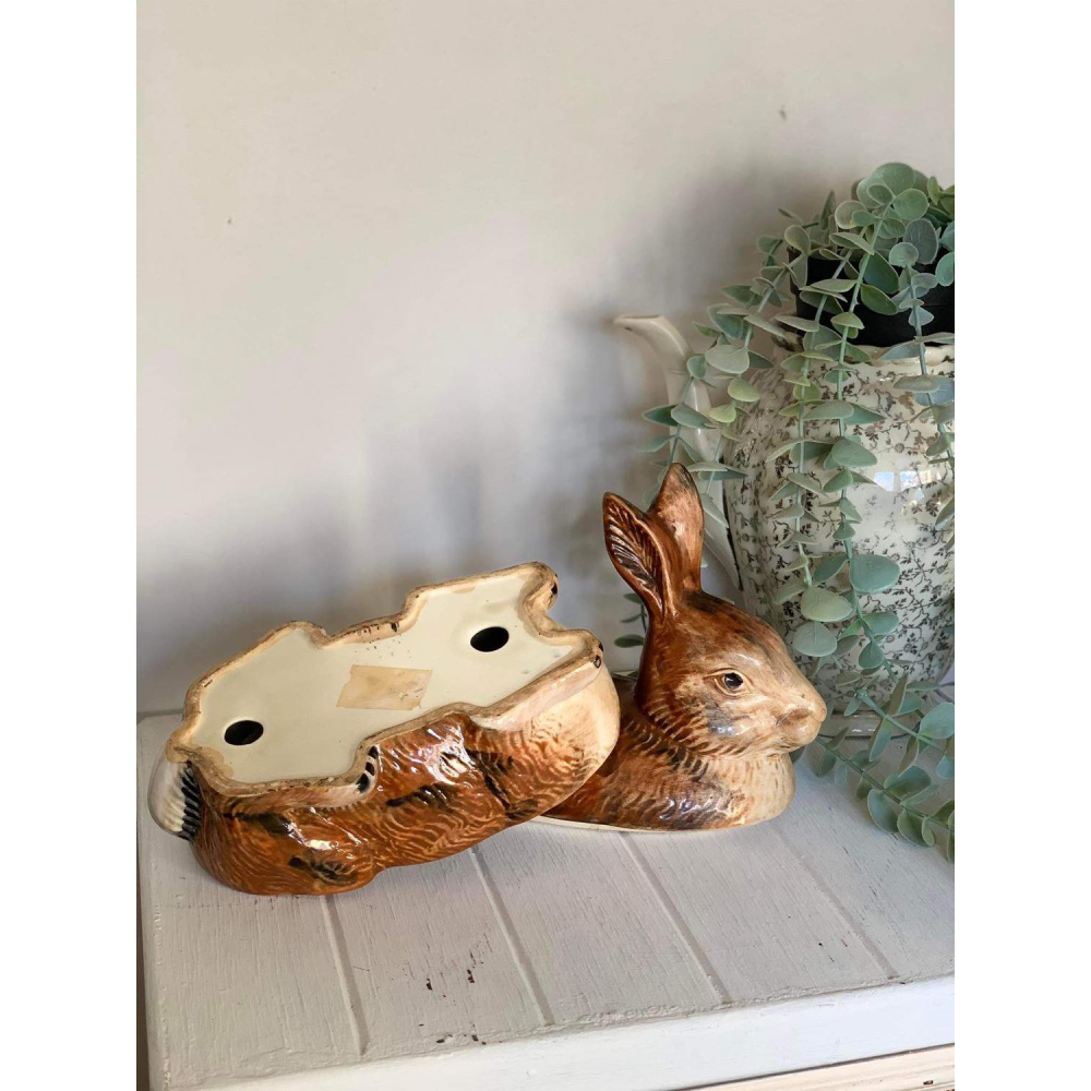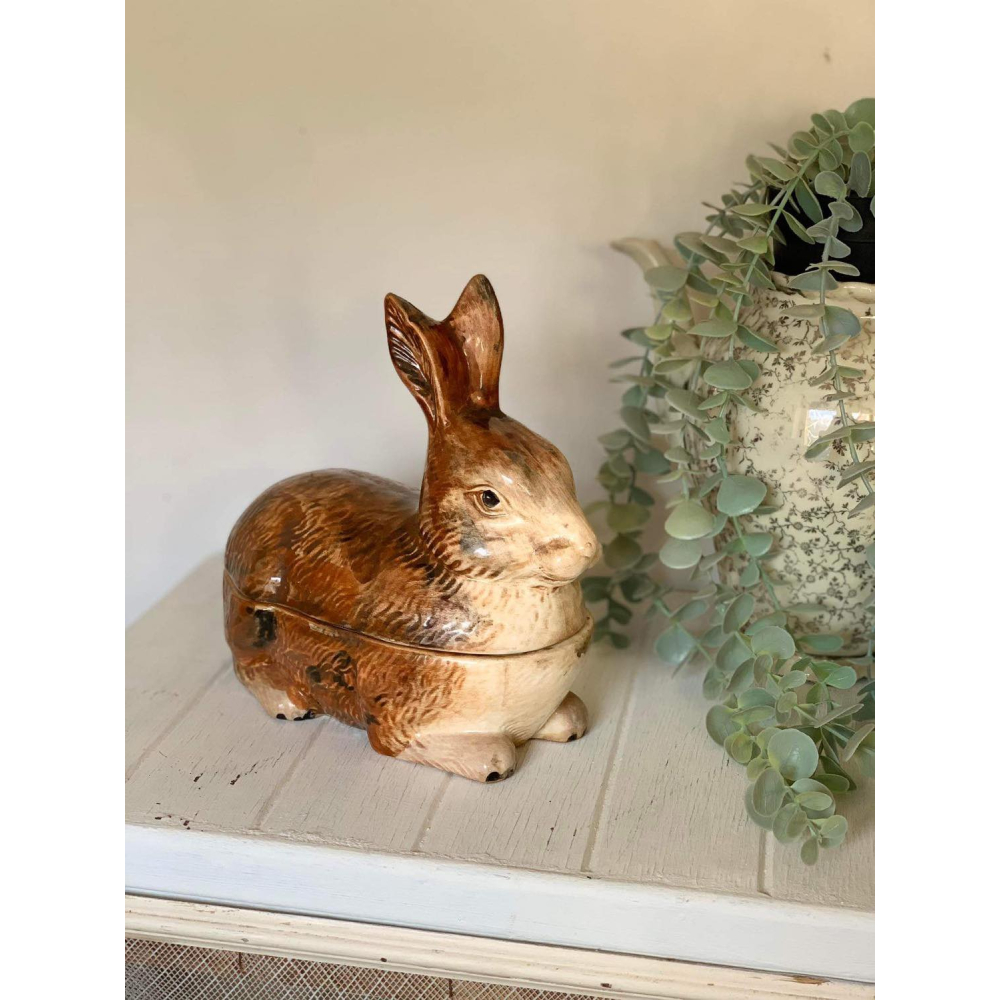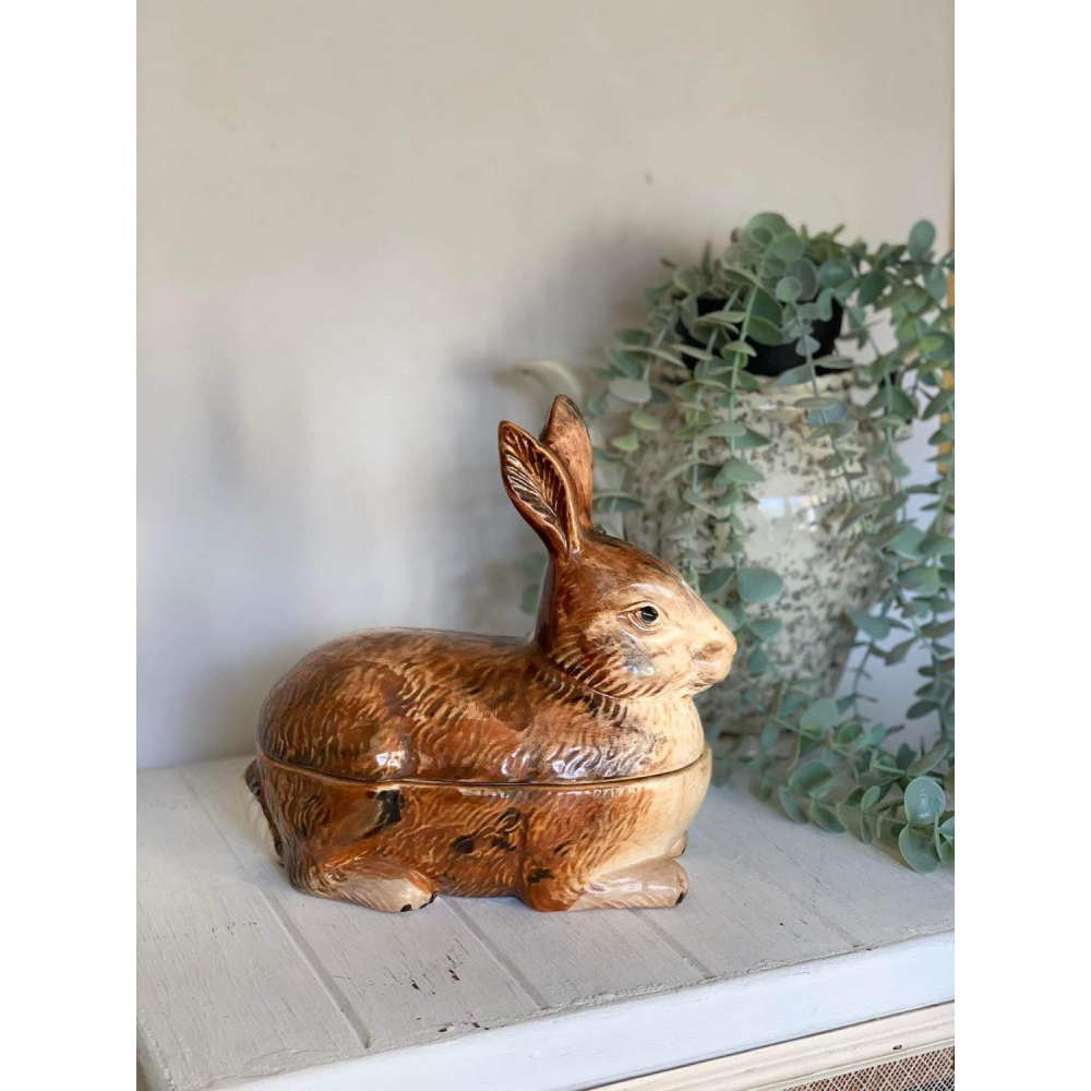 Deze met de hand gemaakte pateschaalt in de vorm van een konijn is van Michel Caugant. Michel Caugant is de zoon van een Franse patémaker en ontwierp terrines voor zijn vaders paté in de vorm van het dier waar de paté van gemaakt werd. Leuk object voor de verzamelaar en prachtig als decoratie! Allemaal met de hand gemaakt. Ze zijn nog in goede tot perfecte staat! Let wel op, elke schaal die gemaakt is door Caugant is met de hand gemaakt en geschilderd, ze zijn dus nooit helemaal identities en kunnen soms verschillen in verf. De boven en onderkanten sluiten ook niet altijd perfect op elkaar doordat ze handgemaakt zijn. Kijk zeker ook eens naar onze andere caugant schalen. Let op! De schaal kan verschillen dan de schaal op de foto, we vullen de voorraad aan maar het zoekertje blijft staan. Wil je graag een foto van de schalen die momenteel binnen zijn twijfel dan niet om contact met ons op te nemen op maisonbrocante70@icloud.com. Soms hebben we verschillende schalen binnen maar omdat ze elk uniek zijn kan tekening of kleur verschillen.