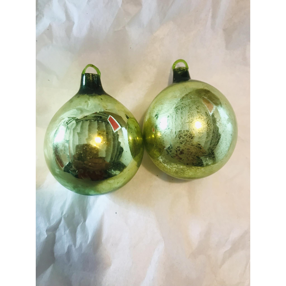 Materialen waren schaars vlak na de oorlog vandaar deze productie, de verzilvering binnenin is in deze versies bij de meeste nog niet op punt en zie je dat die bij veel ballen dan ook afschilfert.