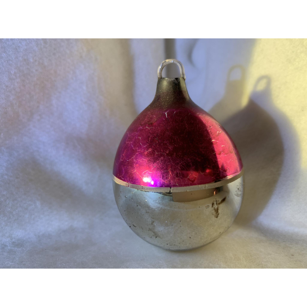 De kerstbal heeft in het een roze kleur die met de hand is ingekleurd in het midden een streep en onderkant zilver.