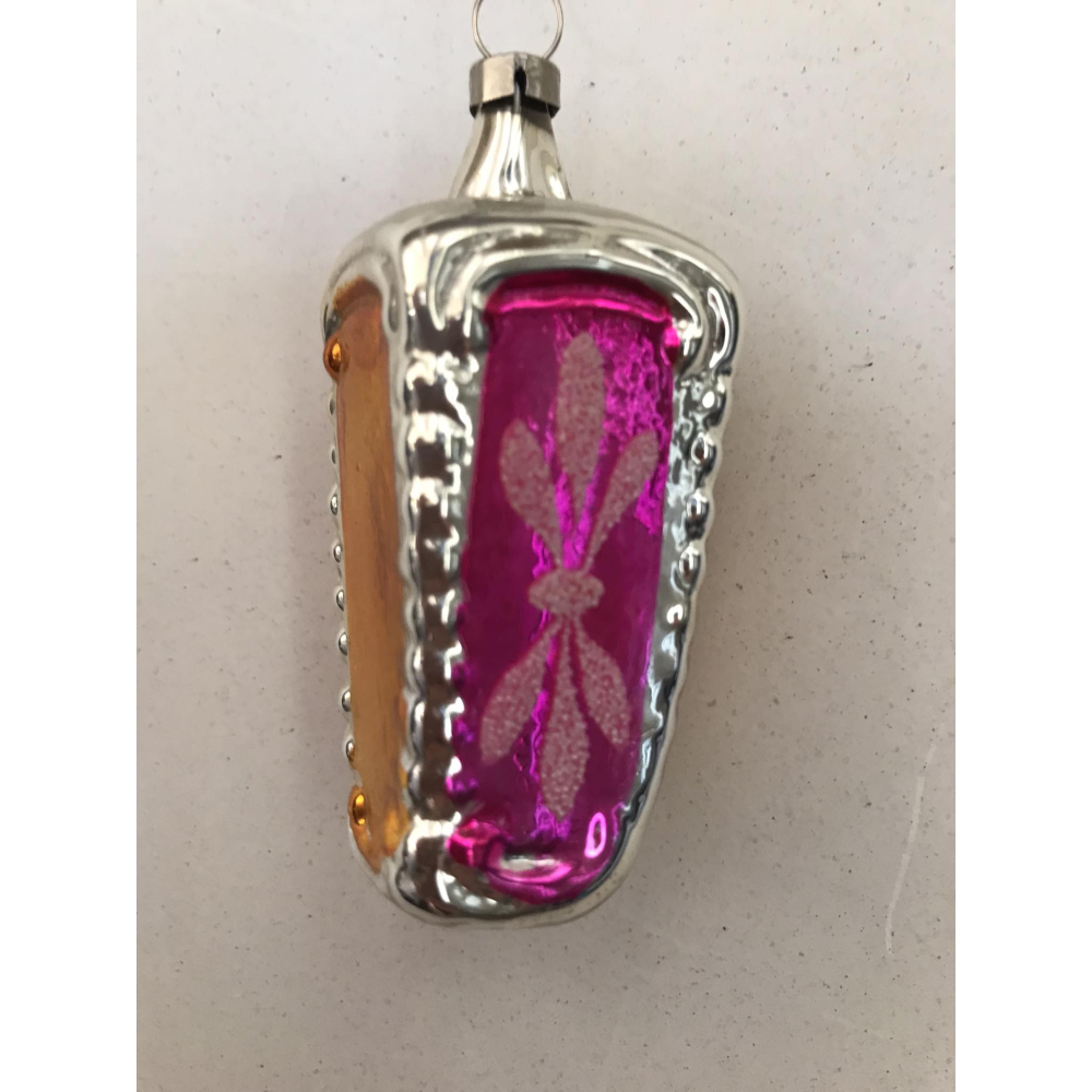 Oude glazen kerstbal in de vorm van een lampion met felle kleurtjes