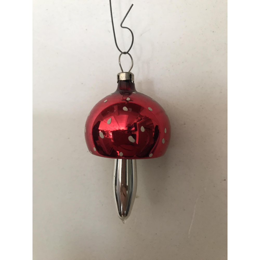VERKOCHT - Oude glazen kerstbal in de vorm van een paddestoel