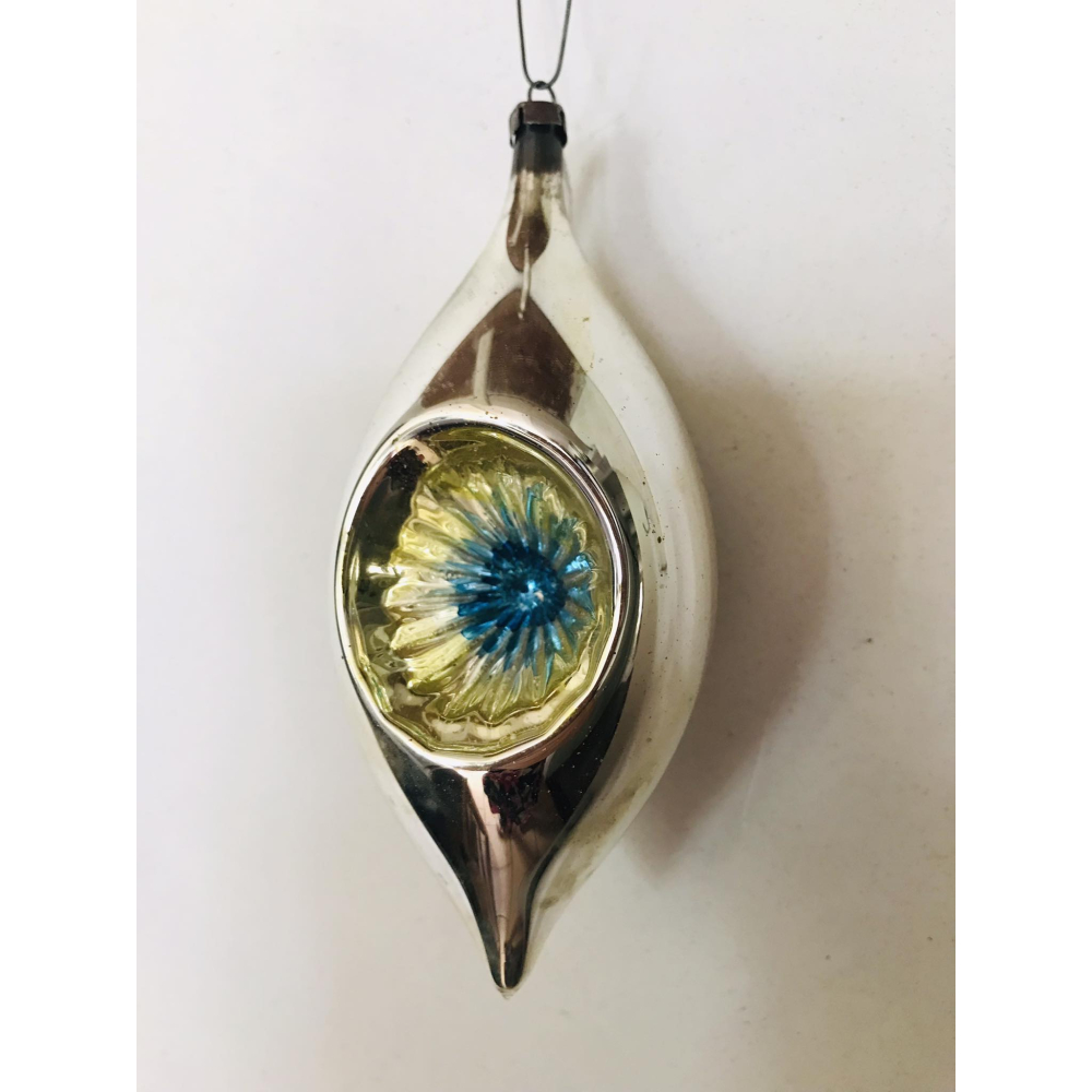 Oude Poolse druppel deukbal. Deze grotere modellen zijn echte eyecatchers. De oude poolse kerstballen zijn meestal te herkennen aan hun dopje en hebben over het algemeen fellere kleuren. 12cm