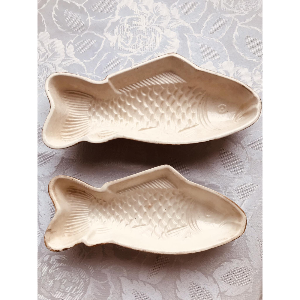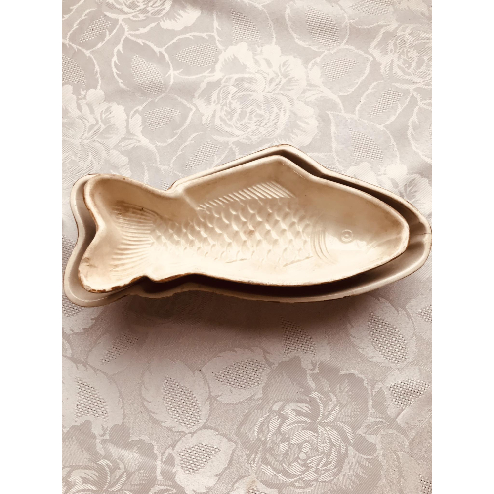 Oude keramiek pudingvormen in gebruikte staat