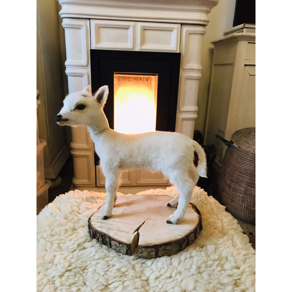 Mooi wit staand lammetje. Nieuwe Taxidermie dus in perfecte staat. 36cm lang 41cm hoog