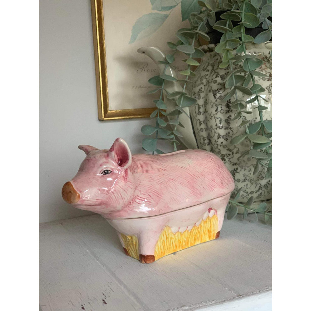 We hebben er hier al enkele laten passeren en zijn zelf ook helemaal verkocht aan de patéschalen van Michel Caugant Michel Caugant is de zoon van een Franse patémaker en ontwierp terrines voor zijn vaders paté in de vorm van het dier waar de paté van gemaakt werd. Leuk object voor de verzamelaar en prachtig als decoratie! Allemaal met de hand gemaakt. Ze zijn nog in goede tot perfecte staat! Let wel op, elke schaal die gemaakt is door Caugant is met de hand gemaakt en geschilderd, ze zijn dus nooit helemaal identities en kunnen soms verschillen in verf. De boven en onderkanten sluiten ook niet altijd perfect op elkaar doordat ze handgemaakt zijn. Informeer zeker ook eens naar mijn andere zoekertje voor meer caugant patéschalen