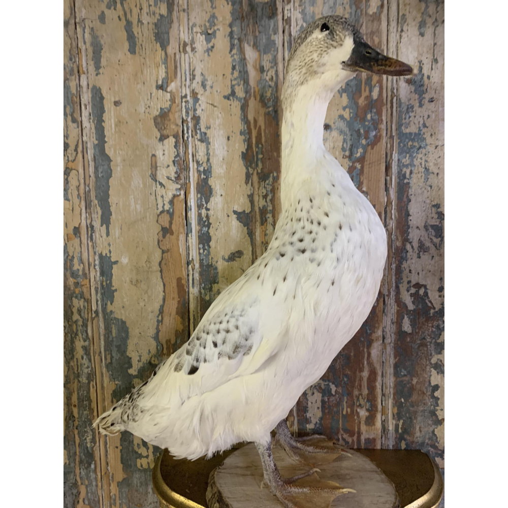 Spikkel de loopeend is eentje zoals we er bijna altijd vast in het assortiment hebben, alleen is spikkel een specialleke met zijn zwart grijze spikkels en donkerdere kop. Buiten het feit dat hij er iets anders uitziet is het een echte lieverd. Spikkel is 45cm groot.