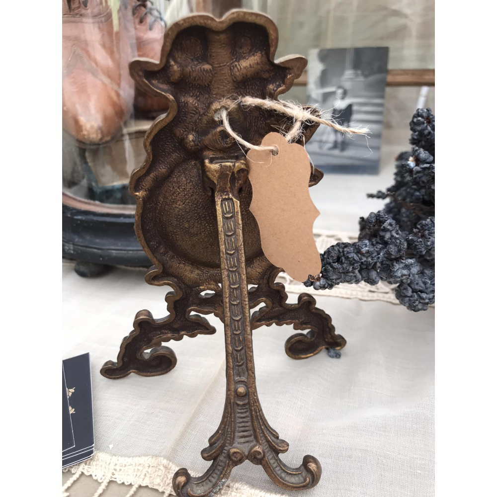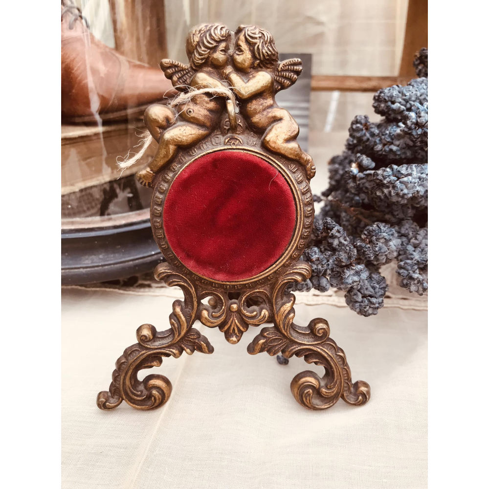Dit mooie houdertje afgewerkt met 2 mooie engeltjes bovenop is gemaakt in messing en bedoeld om een zakhorloge aan te hangen. Stond vroeger naast de wasbak of op het nachtkastje. Ze dateren van de tweede helft van de 19de eeuw. 16cm hoog